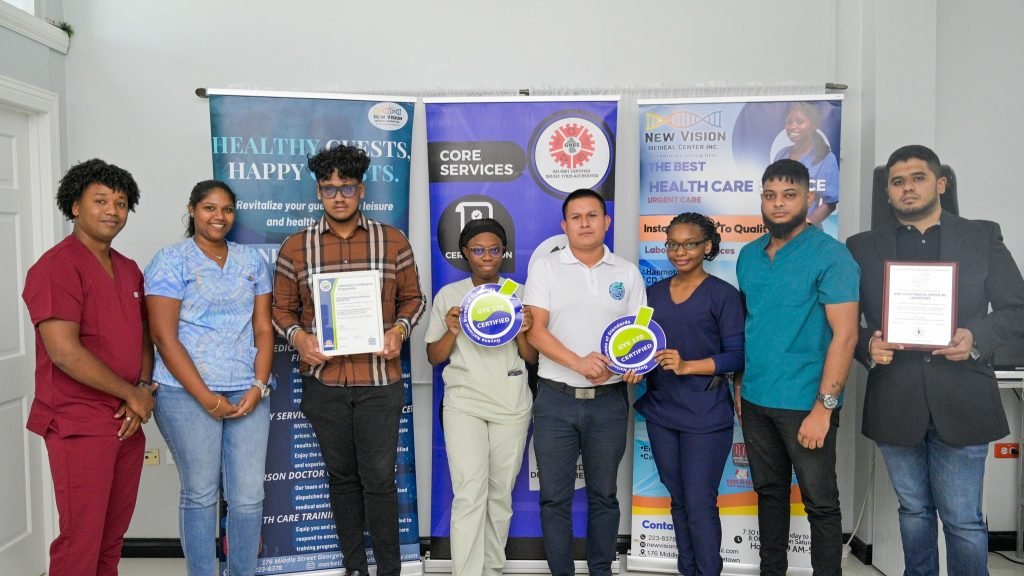 The second laboratory – New Vision Medical Center Inc. Laboratory – was certified on Wednesday, November 20. The certificate was handed over by Head of Certification (Ag), Keon Rankin to Chief Operation Officer, Bradley Chin at the laboratory’s 176 Middle Street, Georgetown location.