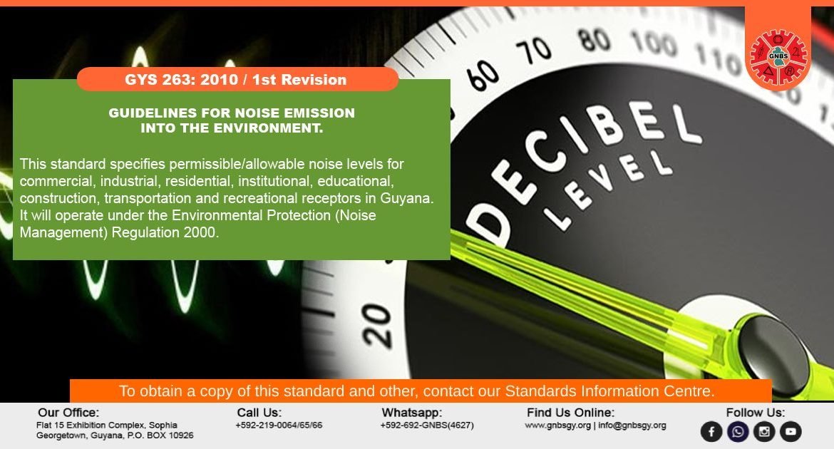 The Guyana National Bureau of Standards (GNBS) has developed a Guyana Standard – Guidelines for noise emission into the environment…