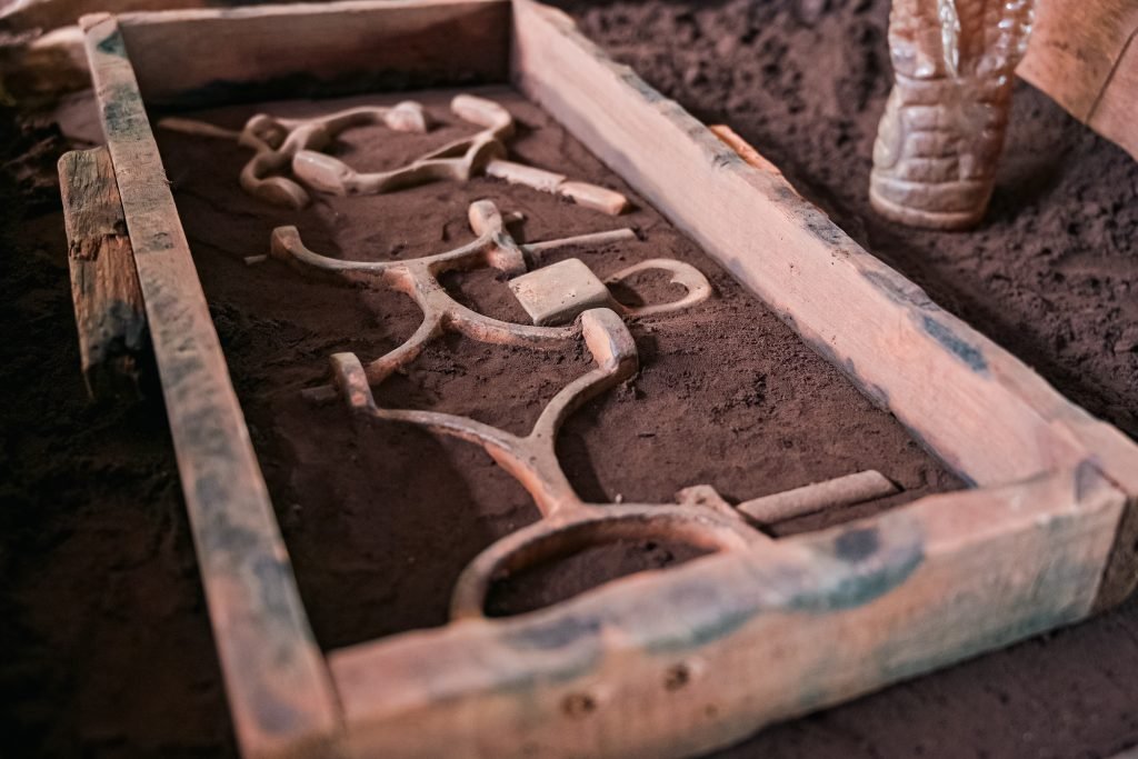 The mould comprises of a wooden box rammed with sand. It has two parts – the top half called the ‘cope’ and the bottom half called the ‘drag’. The process entails placing a standard of the intended design into the ‘drag’ after which the sand is rammed around it to leave an imprint. Water is poured to cement the design in place. The cope is placed on top of the design to acquire the imprint from the top of the design after which that is removed to allow for the removal of the standard parts leaving the exterior contours in the sand. The melted metal is poured into holes at the top of the mould and left to solidify to form the new parts.