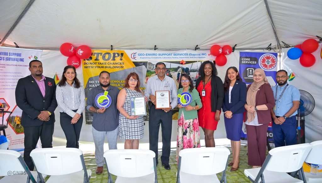 The GEO-ENVIRO SUPPORT SERVICES (GUYANA) INC. Laboratory is newest laboratory to be certified under the GNBS Laboratory Certification Programme. The Laboratory, located at Ogle, East Coast Demerara, received its certificate and plaque from the GNBS on Monday, May 19, 2025, during a special ceremony.