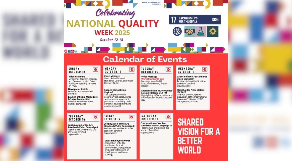 Annually, Standards Bodies worldwide unite to observe World Standards Day on October 14, celebrating the vital role standards play in shaping a safer, smarter, and more sustainable world. In Guyana, the Guyana National Bureau of Standards (GNBS) goes a step further by dedicating the entire week (October 12-18) as National Quality Week (NQW).