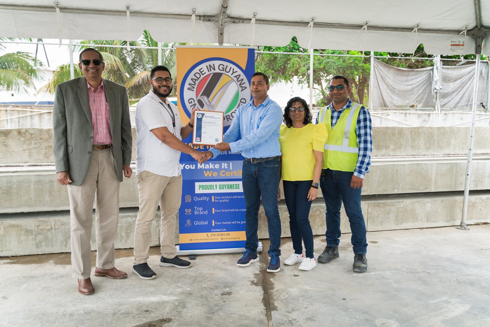 The Made in Guyana certificate, which is valid for one year, was handed over by GNBS Technical Officer, Mr. Latchman Mootoosammi who congratulated the company on its achievement and urged other local manufacturers to join the programme.
