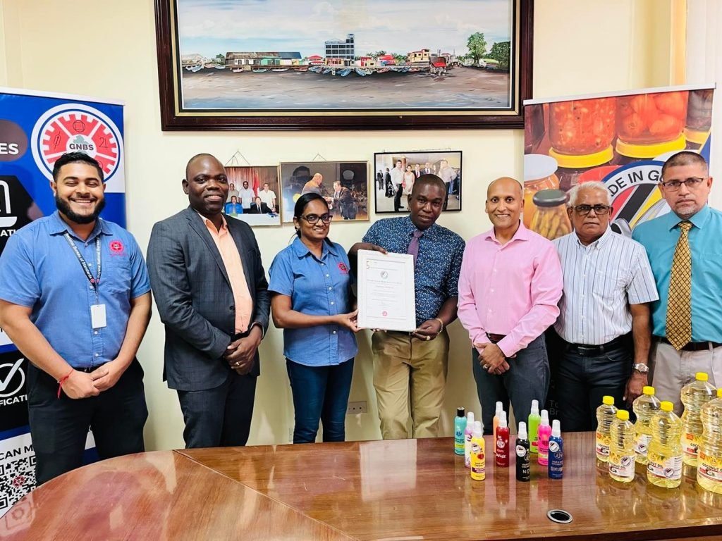 The Guyana National Bureau of Standards (GNBS) on Thursday, August 18, 2022, certified two companies in Region Two (Pomeroon – Supenaam) under its Made in Guyana Certification Mark Programme. The companies namely: Pomeroon Oil Mill Inc. and Henvil Farm received their certificates to use the Made in Guyana Standards Mark on their locally manufactured products.