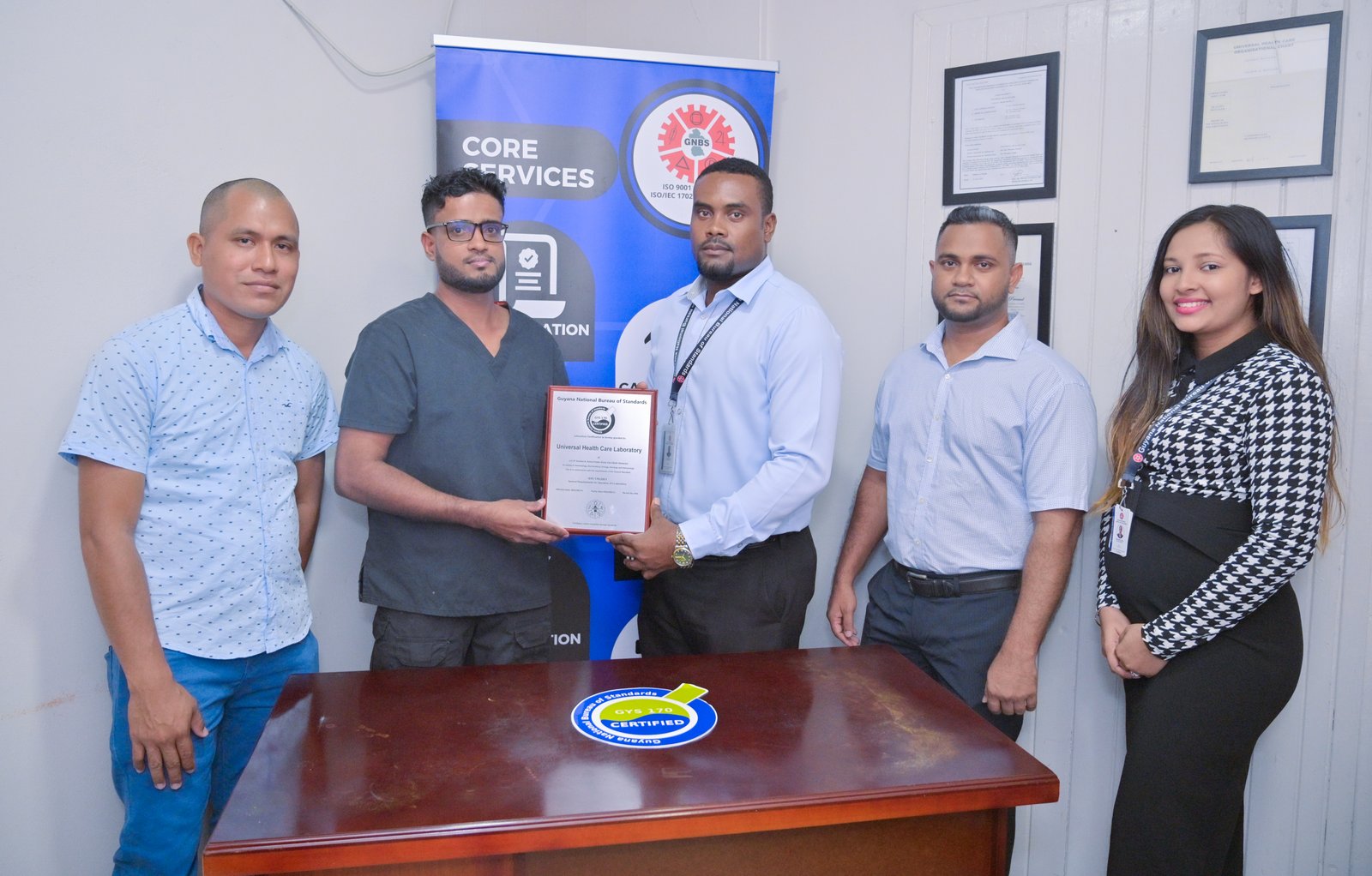 The Guyana National Bureau of Standards (GNBS) today, Wednesday, August 16, 2023, certified the Universal Health Care Laboratory to the National Standard GYS 170:2021 – “General Requirements for the Operation of a Laboratory”. This is the thirtieth laboratory to join the Bureau’s Laboratory Certification Programme.