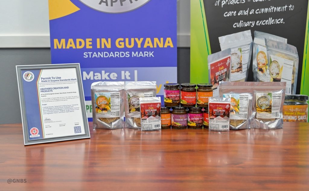Between May and June, three companies earned the prestigious Made in Guyana Certification Mark, which authenticates the local origin and quality of their products. These proudly certified companies are Heather’s Creation and Products, Pure Aqua and Treev’s Natural Blends.