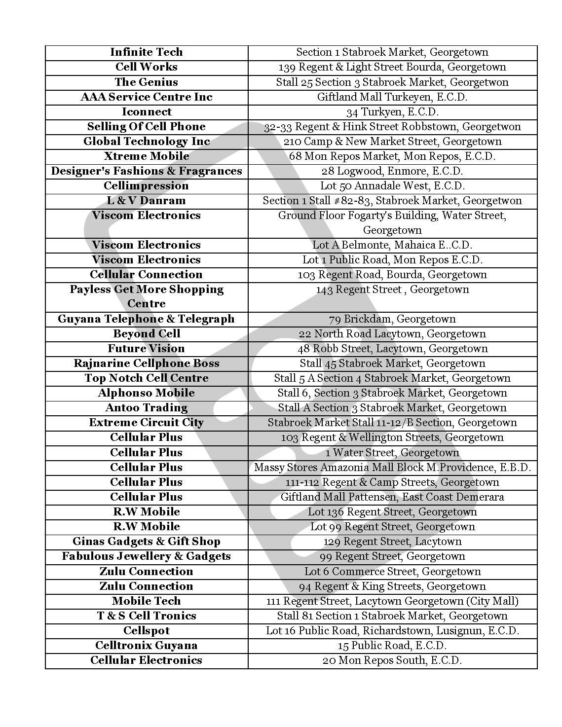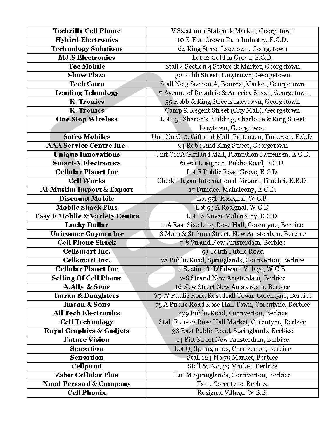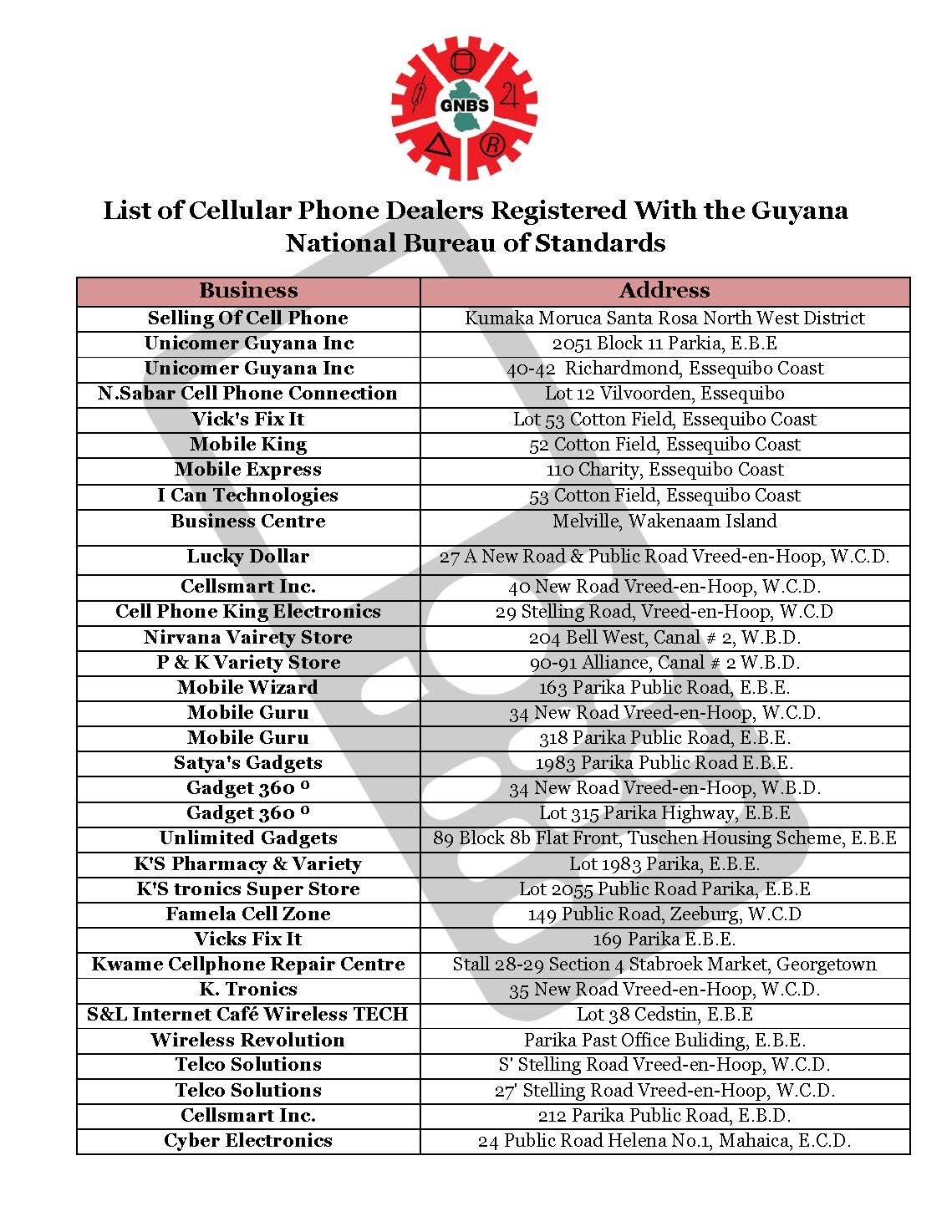 28 Nov by Stanis MenezesUncategorizedNo Comments on List of Cellular Phone Dealers Registered With the GNBS List of Cellular Phone Dealers Registered With the GNBS